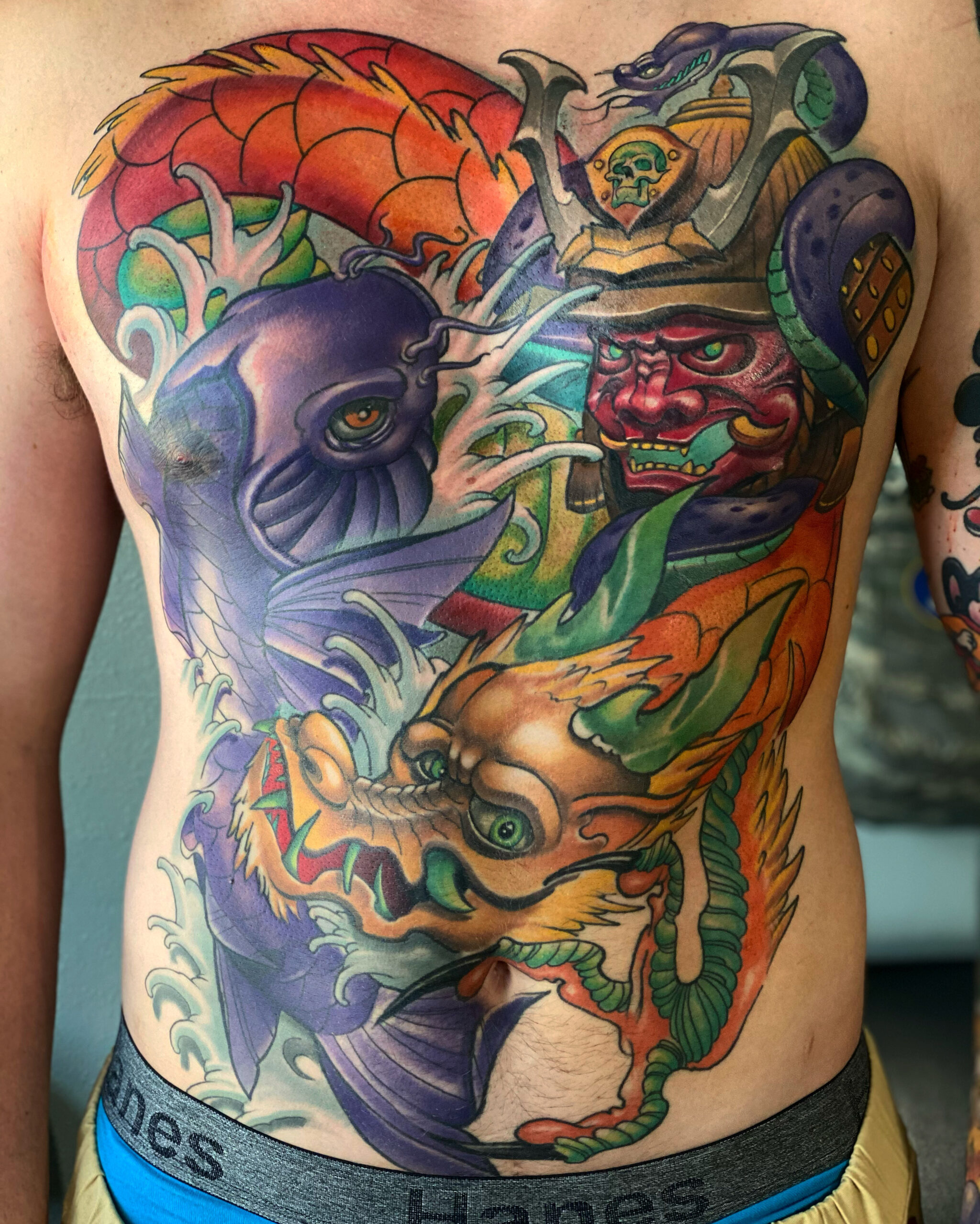 First tattoo? Seasoned collector? Mid-life crisis? Bored? Impulse decision? Perfect! Justin is available to bring your ideas to reality and onto your skin! Justin enjoys large-scale, multi session tattoos but is available for walk-ins on a first come, first serve basis.